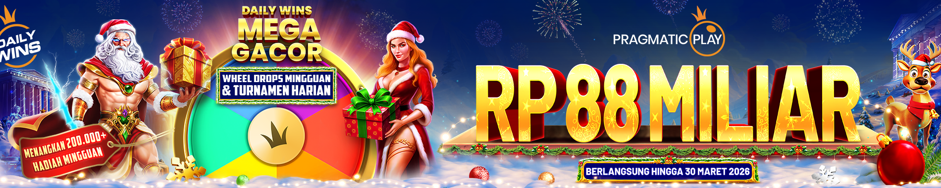 Daily Wins Mega Gacor akan berlangsung mulai 24 Maret 2025 hingga 30 Maret 2026 dengan Total Hadiah sebesar Rp 88,000,000,000 dalam 12 Level.